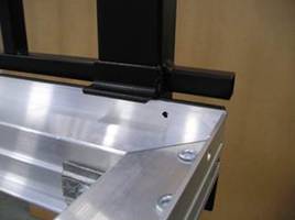 Schutzgeländer für Bühnenpodeste mit umlaufendem Multifunktionskanal . Die Befestigung erfolgt direkt im Kanal mit entsprechender Verstärkung am Rahmen.