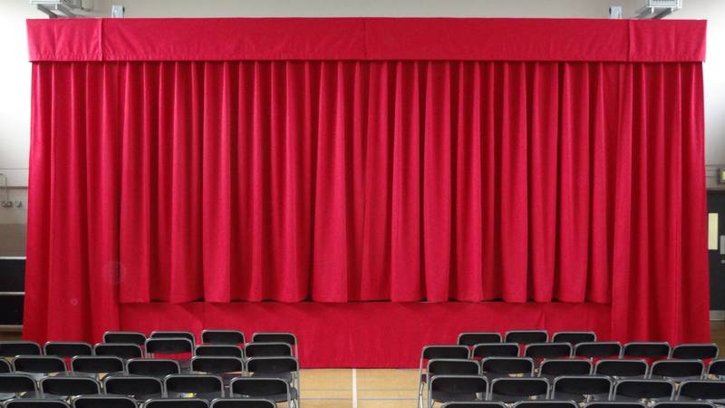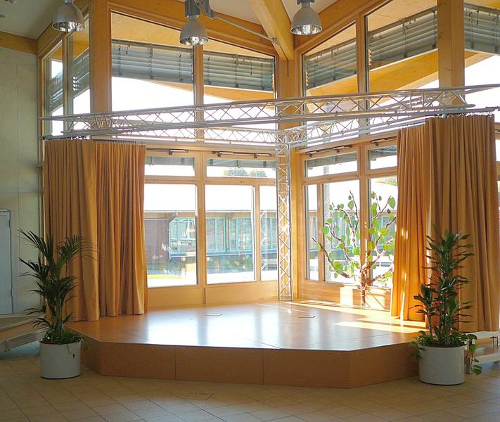 ![]() Complete stage Trenomat FIX with portal system, main curtain and truss lighting system in closed state | <br /With open main curtain | ||