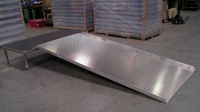 ![]() Mobile wheelchair ramp riffle weld suitable for stage height of 0,40 - 0,50 m edge protection, recessed grip and fiaxation | Intersection ramp/stage | recessed grip for easy handling and transport |